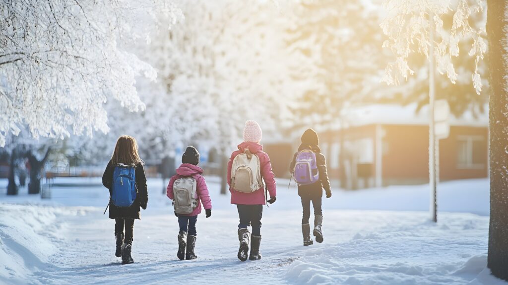 · Ensure they have appropriate shoes for the weather or provide boots they can change out of once they reach school.